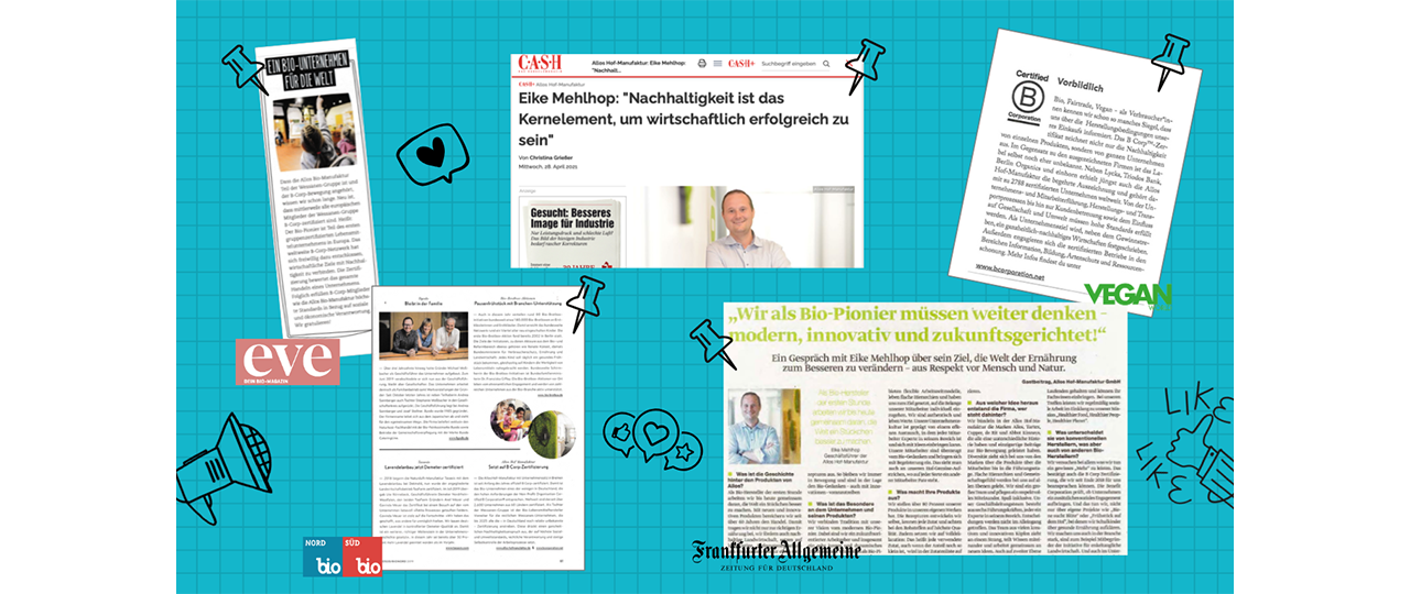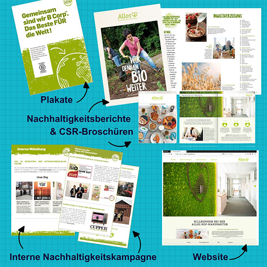 Wie machen das viele Gute sicht- und erlebbar und zeigen, dass Nachhaltigkeit einen Charakter hat. Wir geben der Allos BioMarken-Manufaktur einen neuen Namen und ihren Mitarbeitenden eine Vision. Ein Leitbild, um ihre Haltung für Bio-Lebensmittel und nachhaltiges Engagement zu stärken und zu leben. Als Dachmotto aktivieren wir die Mission ,„Wir denken Bio weiter!”. Das macht stolz, ist selbstbewusst und zukunftsweisend.